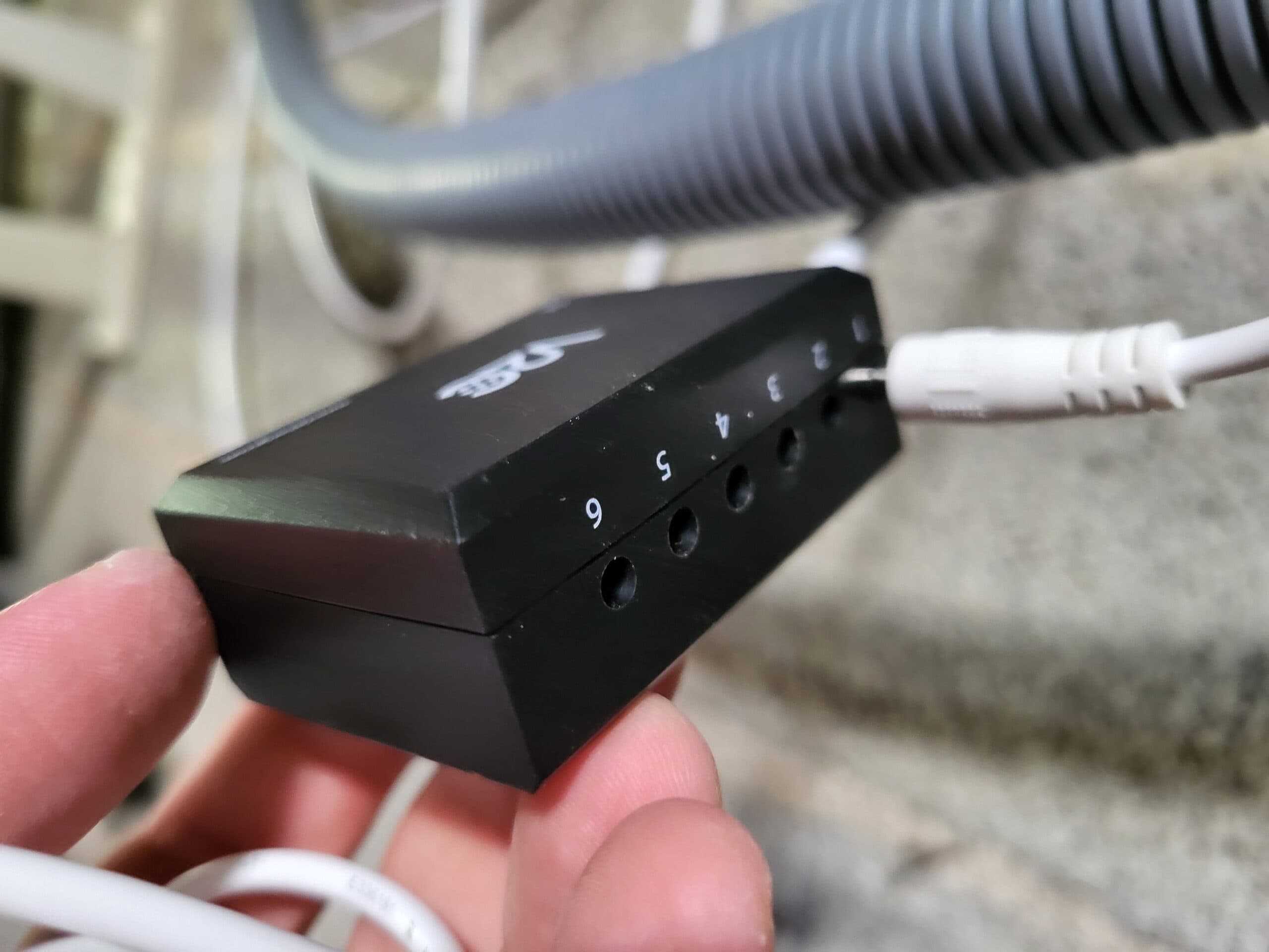 Dans la gaine qui abrite le câble d’alimentation, nous avons également glissé un petit câble Ethernet permettant d’assurer la connexion entre la borne et le boîtier V2C Controlbox dédié au délestage. Un port Ethernet (qui ne peut pas servir à une connexion internet) est bien sûr présent sur la carte électronique de la borne, comme sur le boîtier.