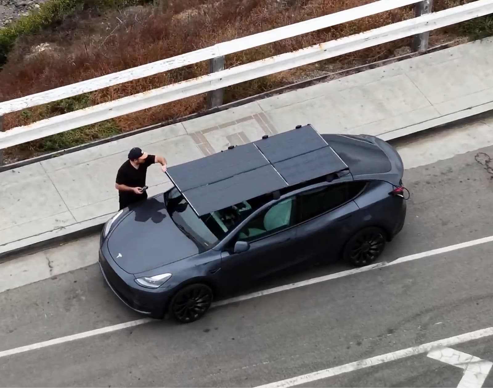 Une société californienne vient de dévoiler une galerie de toit solaire capable, sur le papier, de prolonger l’autonomie des véhicules électriques. L’installation commercialisée par DartSolar se présente sous la forme d’un rack, dont la partie supérieure est un panneau photovoltaïque de 360 Wc. À l’arrêt, deux autres panneaux photovoltaïques peuvent coulisser de part et d’autre du rack, portant la puissance totale à environ 1 000 Wc. Selon le fabricant, l’ensemble peut être déployé en une dizaine de secondes.
