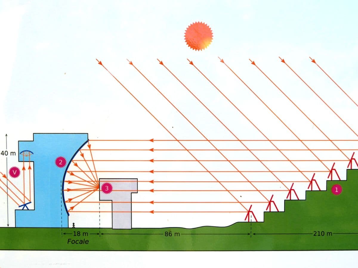 Selon la PME, le four atteindra une température de 2 000 °C, largement suffisante puisque le point de fusion de l’acier, de l’inox et du titane se situe entre 1 400 et 1 700 °C. Pour obtenir une telle fournaise, le dispositif devra concentrer la puissance du rayonnement solaire en un seul point grâce à des miroirs.
