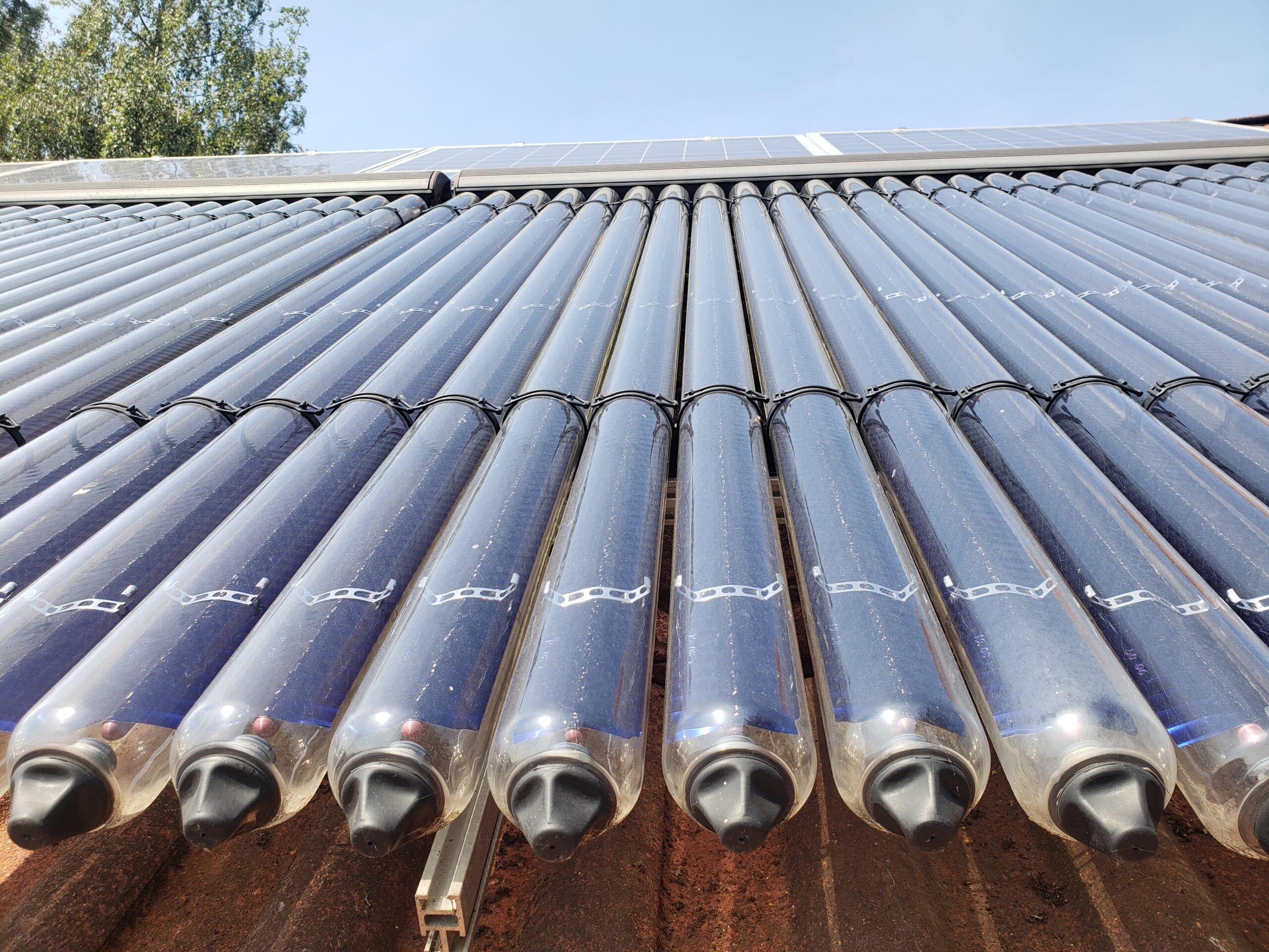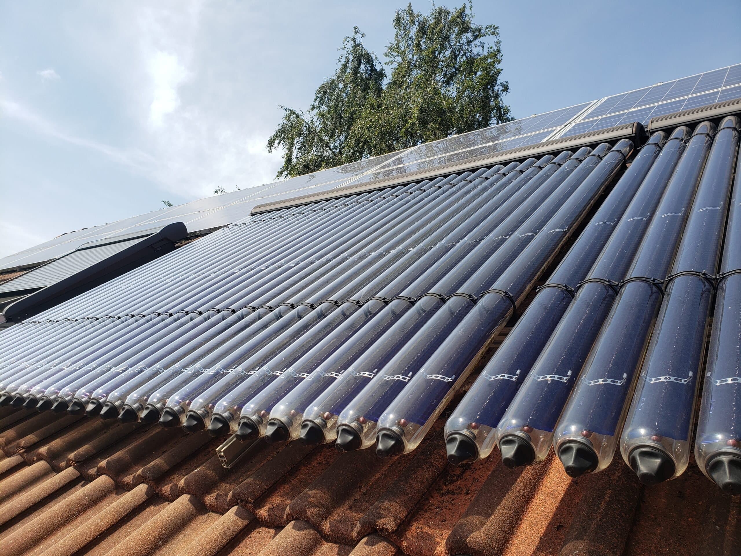 Les capteurs thermiques du combi-solaire sont composés de tubes sous vide / Images : Bruno Catiau.