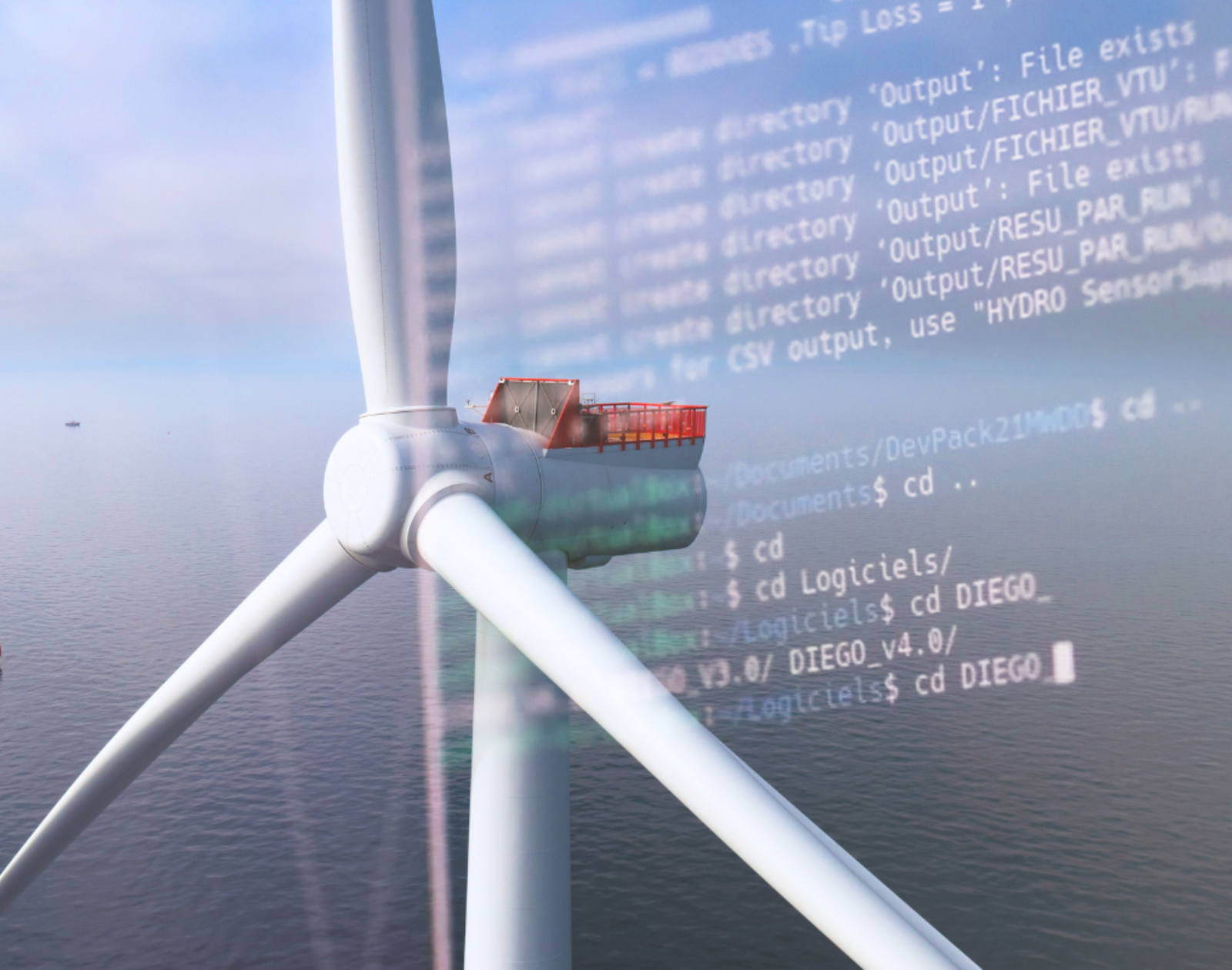 L’union fait la force. Avec ce crédo en tête, les équipes d’EDF Renouvelables et de la R&D EDF ont mis en commun leurs compétences et leur savoir-faire pour mettre au point DIEGO, un logiciel destiné à modéliser le comportement des éoliennes en mer. EDF Renouvelable a apporté son expérience sur l’éolien en mer, et EDF R&D son expertise en modélisation 3D, une technologie déjà largement utilisée dans les domaines du nucléaire et de l’hydraulique. Acronyme de « Dynamique intégrée des éoliennes et génératrices offshore », ce logiciel permet de modéliser :