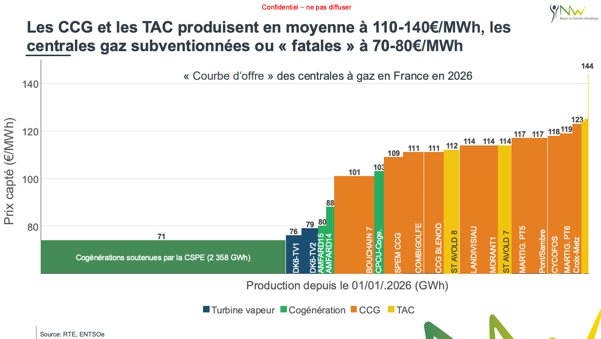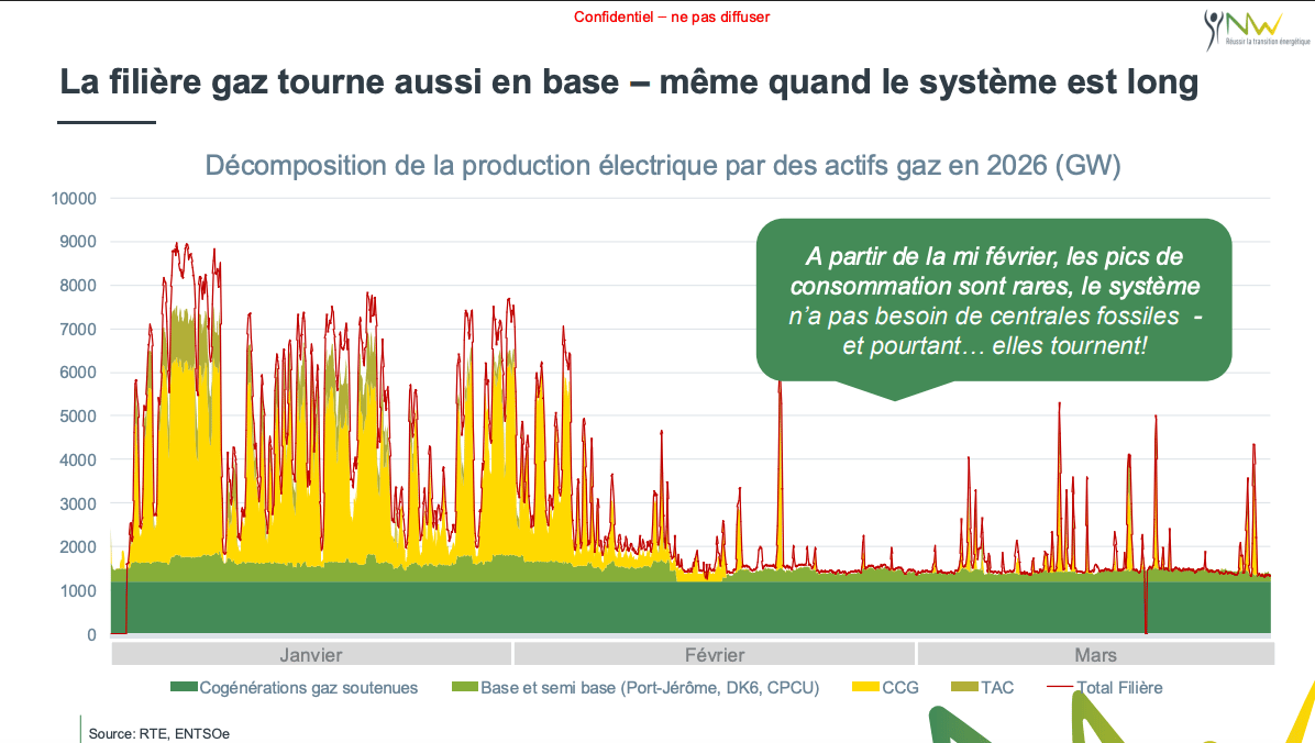 À lire aussiConstruire 10 000 MW de centrales au gaz : le projet fou de l’Allemagne approuvé par l’EuropeCette combinaison explique pourquoi, même en période de faible consommation, le gaz continue de tourner. Certaines cogénérations captent des revenus garantis grâce à leur obligation d’achat et les cycles combinés participent peu au marché. Pour autant, et même si les hivers seront de moins en moins rigoureux, ces centrales peuvent être activées dans les réserves, par exemple aFRR et mFRR. Elles équilibrent le réseau lors des pointes de consommation dans le cadre du mécanisme de capacité. Mais cette base de gaz, inscrite toute l’année sur Éco2mix, doit progressivement disparaître. C’est en tout cas le travail du gouvernement, pour sortir ces centrales polluantes qui n’ont aucune raison d’assurer une base de production.