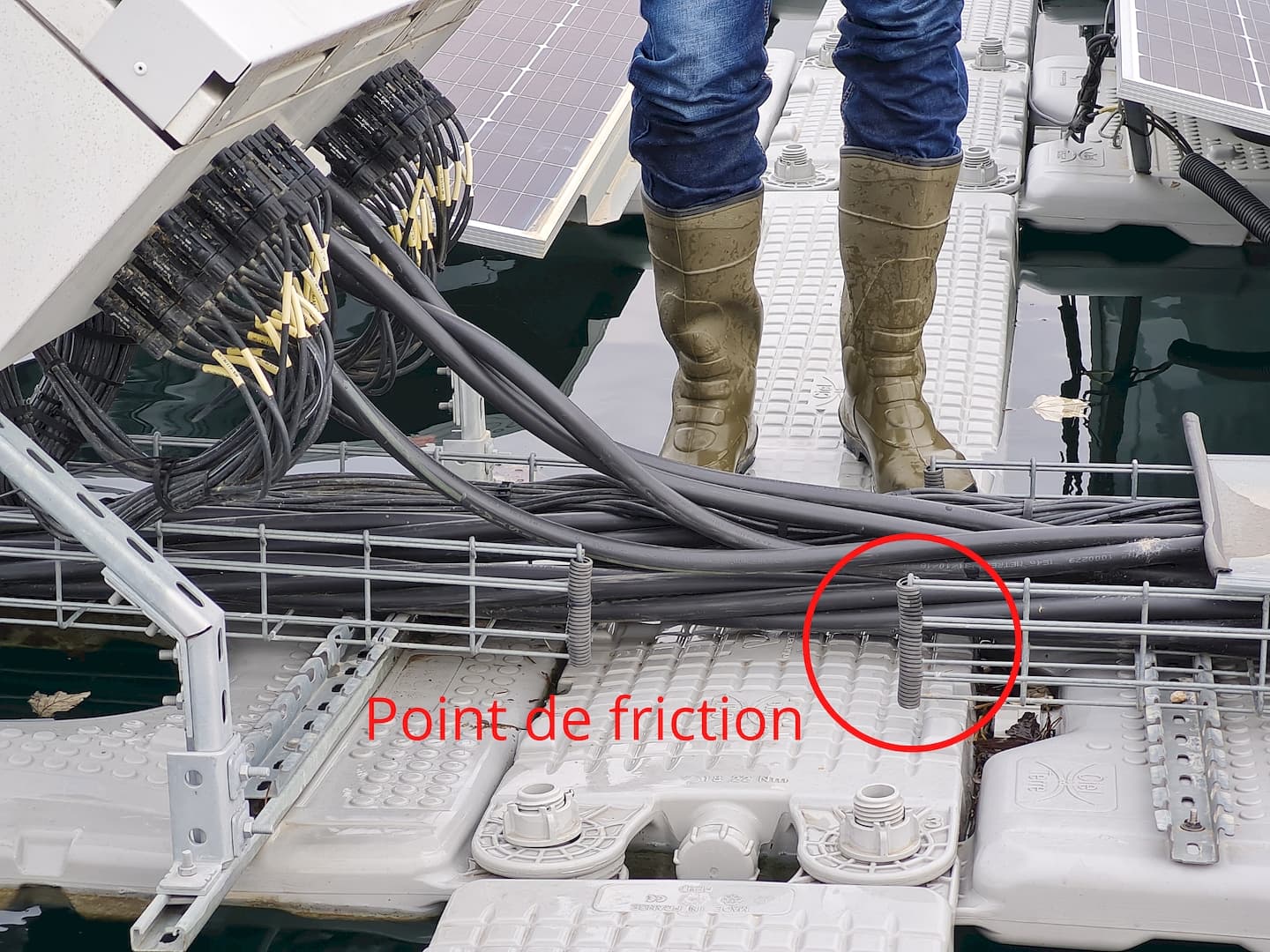 Dénudés, les câbles ont créé un court-circuit qui a partiellement enflammé des flotteurs en plastique PEHD. « L’incendie s’est éteint quand les câbles se sont éloignés et que l’arc électrique s’est arrêté » détaille le responsable. Le feu, très bref, a détérioré trois flotteurs et ne s’est pas propagé aux panneaux. S’étant déplacés sur le site, les pompiers n’ont toutefois pas eu à intervenir, annonce l’exploitant.