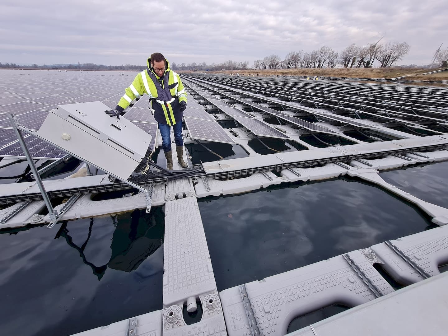 À lire aussiCette centrale solaire flottante sera la plus grande de FranceAkuo Energy ne nous a pas autorisé à prendre de photos du sinistre, la structure interne brevetée des flotteurs « Hydrelio » conçus par la société Ciel et Terre étant visible. L’opérateur promet avoir mis en place des « correctifs » suite à l’incident, consistant en l’installation de renforts de câbles et de protections en plastique sur les parties métalliques sujettes aux frottements.