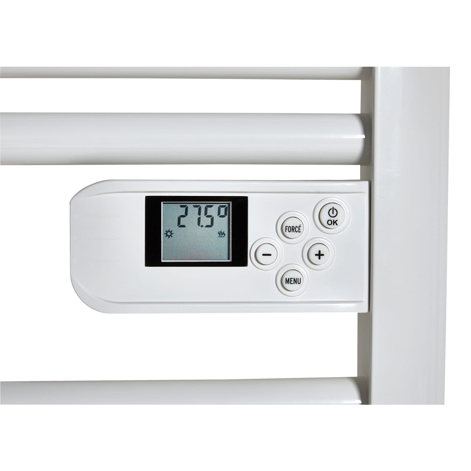Voici le sèche-serviettes performant et abordable par excellence. Avec son cœur de chauffe sans fluide et ses nombreuses fonctions, le Jupiter LCD 500 W de Cayenne est un incontournable des premiers prix. Ce cœur de chauffe assure une montée en température rapide – mais un refroidissement également rapide – pour sécher une serviette après une douche, ou la chauffer avant. Attention, ses 500 W ne lui permettent pas de chauffer une salle de bain complète. En plus de chauffer les serviettes, il pourra servir de petit complément au chauffage principal grâce à son programmateur à plusieurs modes (arrêt, hors gel, éco, confort, marche forcée, programmation, fil pilote…). Petit plus, son afficheur numérique simplifie l’utilisation et indique clairement la température et l’état actuel.