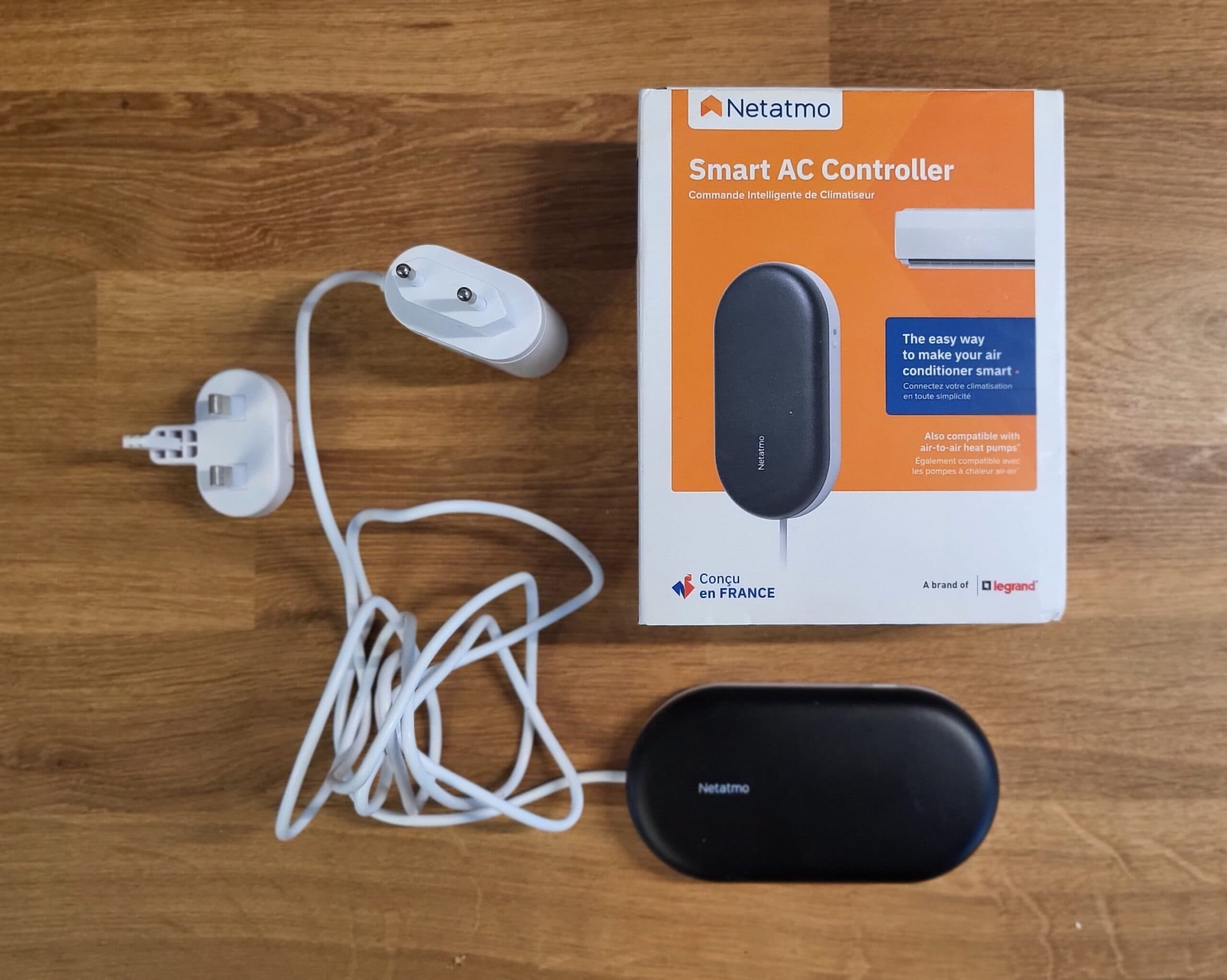 Sur les modèles à bas prix, la connectivité Wifi est souvent proposée en option. Elle s’effectue grâce à un petit module à placer dans l’unité intérieure. En l’occurrence, sur notre appareil, un climatiseur réversible Airton parmi les moins chers du marché. Le module est vendu 99 € et permet le contrôle de la PAC à travers une application smartphone chinoise à l’ergonomie et aux fonctionnalités peu attrayantes. Plutôt que d’acheter à prix d’or cette option, nous avons choisi de tester la commande intelligente de climatiseur Netatmo, plus évoluée, pour un surcoût raisonnable de 20 euros. Il s’agit d’un boîtier externe présenté comme compatible avec « tous les climatiseurs avec une télécommande infrarouge dont l’écran affiche tous les réglages ».