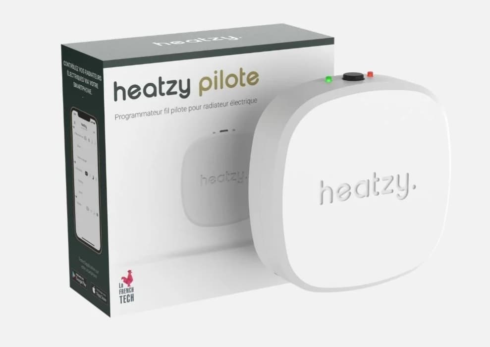 Le Pilote est fabriqué par la société Heatzy, fondée en 2016, et spécialisée dans la conception de solutions domotiques pour le chauffage électrique et la climatisation. Le module est de petite taille (2 x 7,8 x 7,8 cm), il a un design élégant et discret, et son installation se fait en toute simplicité. L’application de pilotage du fabricant est gratuite, et disponible sur iOS (Apple) et Android.