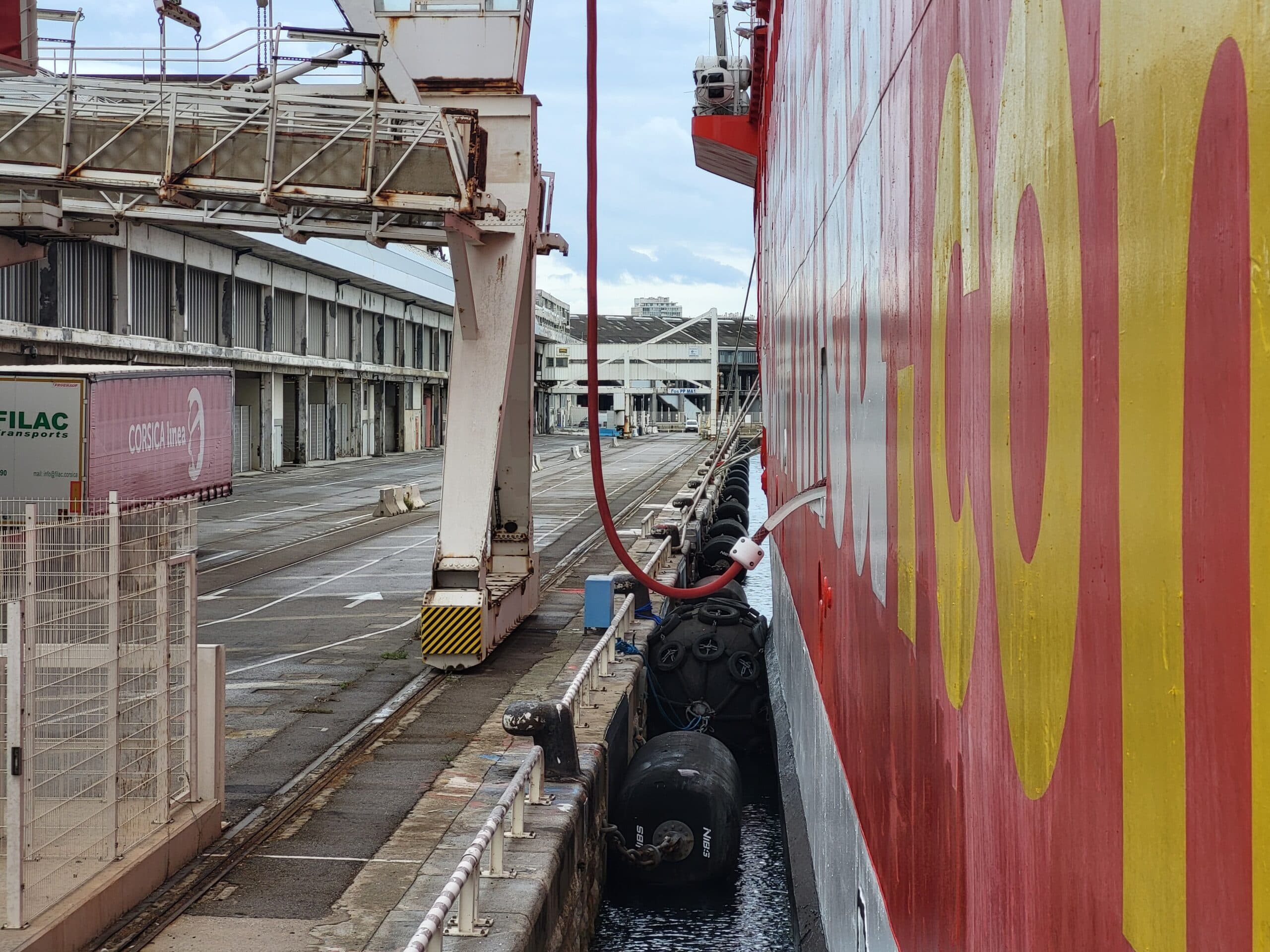 Si les ferrys consomment toujours du fioul pour quitter le port ou y accoster, la majorité peut désormais éteindre leurs générateurs durant leur escale, qui peut être très longue, notamment en hiver où les rotations sont moins fréquentes. Or, un ferry amarré consomme « 8 à 10 tonnes de fioul par jour », nous explique le commandant du Danielle Casanova, fleuron de la compagnie Corsica Linea. C’est trois fois moins que la trentaine de tonnes de fioul nécessaires pour réaliser une traversée Marseille – Ajaccio, mais tout de même considérable.