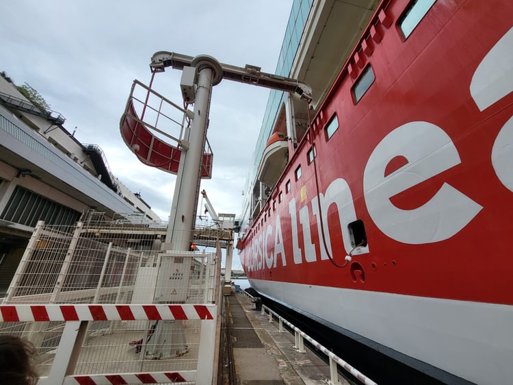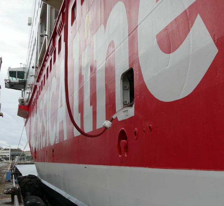 Si les ferrys consomment toujours du fioul pour quitter le port ou y accoster, la majorité peut désormais éteindre leurs générateurs durant leur escale, qui peut être très longue, notamment en hiver où les rotations sont moins fréquentes. Or, un ferry amarré consomme « 8 à 10 tonnes de fioul par jour », nous explique le commandant du Danielle Casanova, fleuron de la compagnie Corsica Linea. C’est trois fois moins que la trentaine de tonnes de fioul nécessaires pour réaliser une traversée Marseille – Ajaccio, mais tout de même considérable.