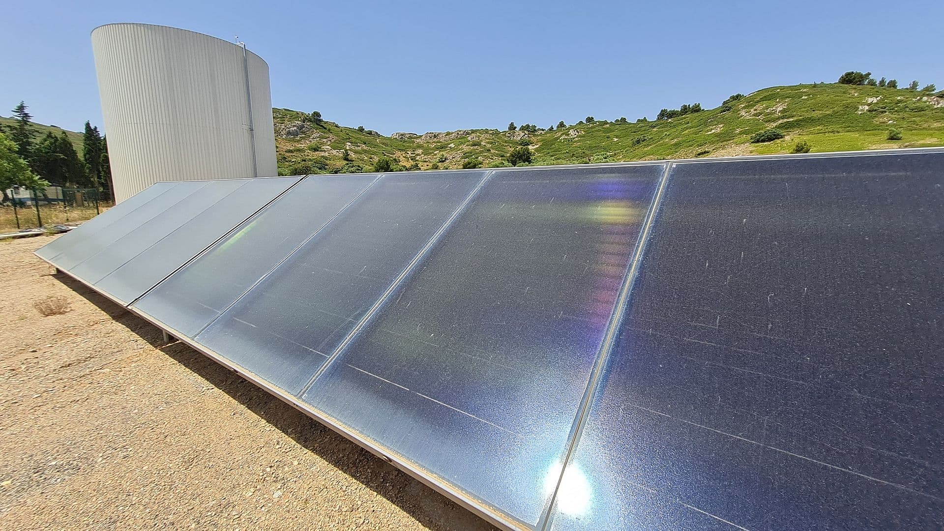 D’une capacité de 1 000 m3, ce dernier stocke l’eau afin de compenser la variabilité du rayonnement solaire. La partie haute de la cuve contient l’eau chaude livrée au réseau, la partie basse l’eau froide envoyée dans le champ de panneaux. Le réservoir permet de poursuivre la livraison de chaleur au réseau pendant la nuit et jusqu’à 3 jours en autonomie, lors d’un épisode pluvieux par exemple. La simplicité et l’efficacité de cette forme de stockage d’énergie est l’un des grands avantages du solaire thermique.