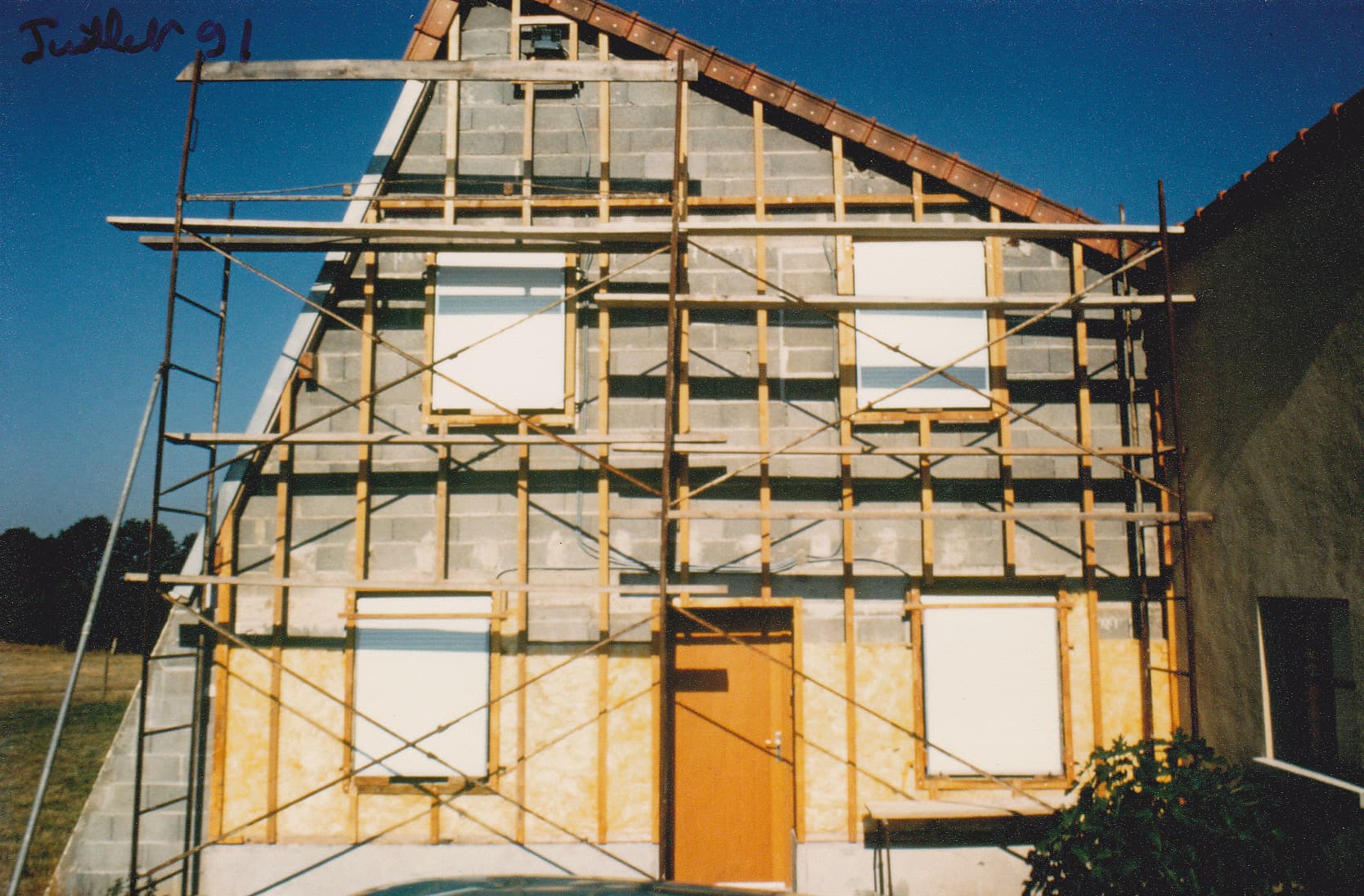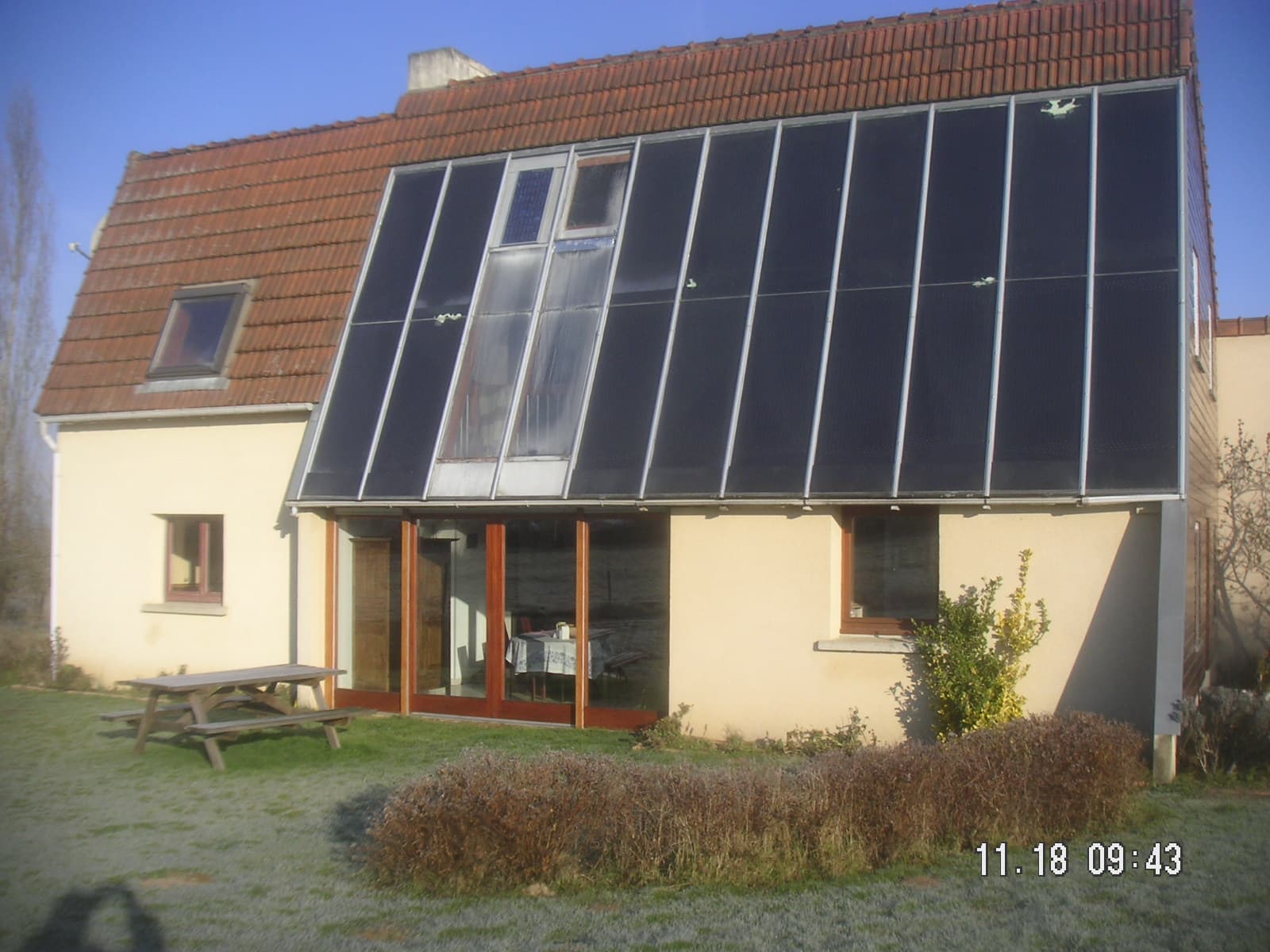 L’homme réalise seul l’intégralité des travaux : des plans aux fondations, jusqu’à l’installation du dernier panneau solaire thermique en 1998, seize années après la pose de la première pierre. Il jouit désormais d’une habitation de 149 m² produisant une grande partie de sa consommation d’énergie. L’essentiel provient du soleil : il lui permet de couvrir 80 % de ses besoins de chauffage et d’eau chaude sanitaire en moyenne sur l’année.