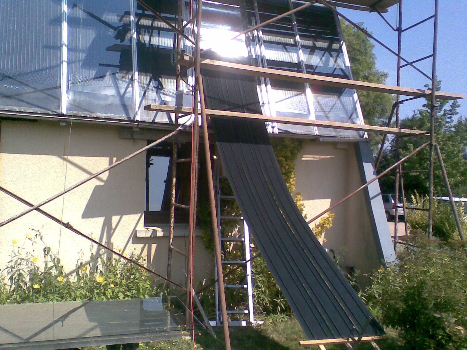 L’installation du bardage isolant sur les façades extérieures.