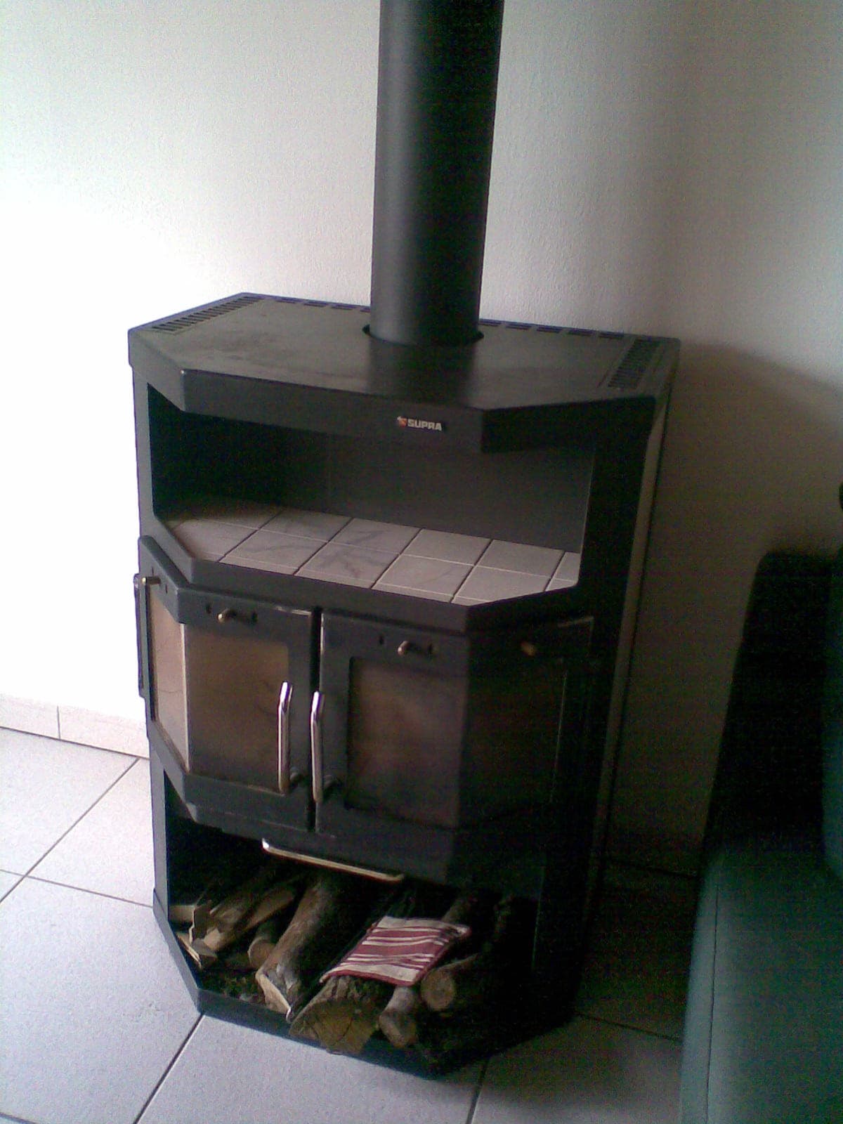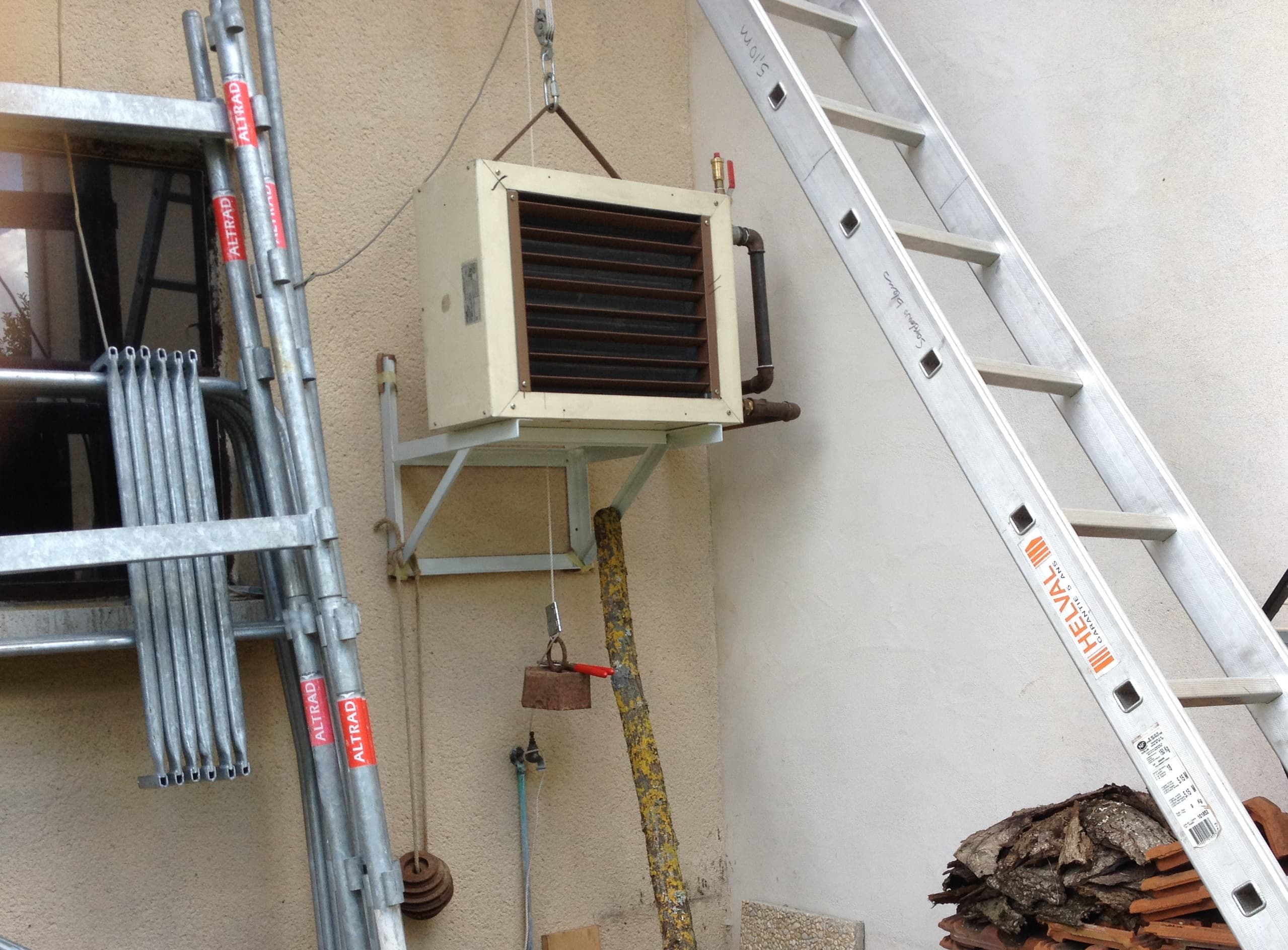 Poêle à bois et aérotherme.