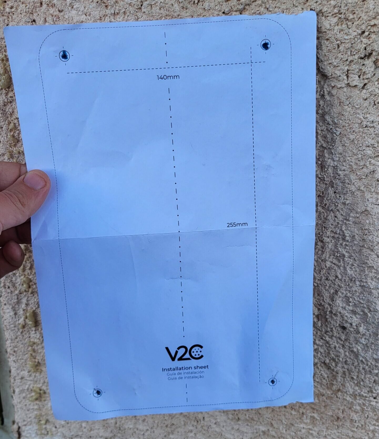 Pour fixer la borne au mur, un patron est fourni afin de réaliser les perçages aux bons endroits. Nous regrettons seulement la présence d’un presse-étoupe à nos yeux trop rigide et inadapté à notre gaine ICTA de 32 mm. Une fois l’installation réalisée et soigneusement vérifiée, l’on referme la porte de la borne, la verrouille au moyen d’une mini-clé fournie (attention à ne pas la perdre !), puis fermons les disjoncteurs sur le tableau général.